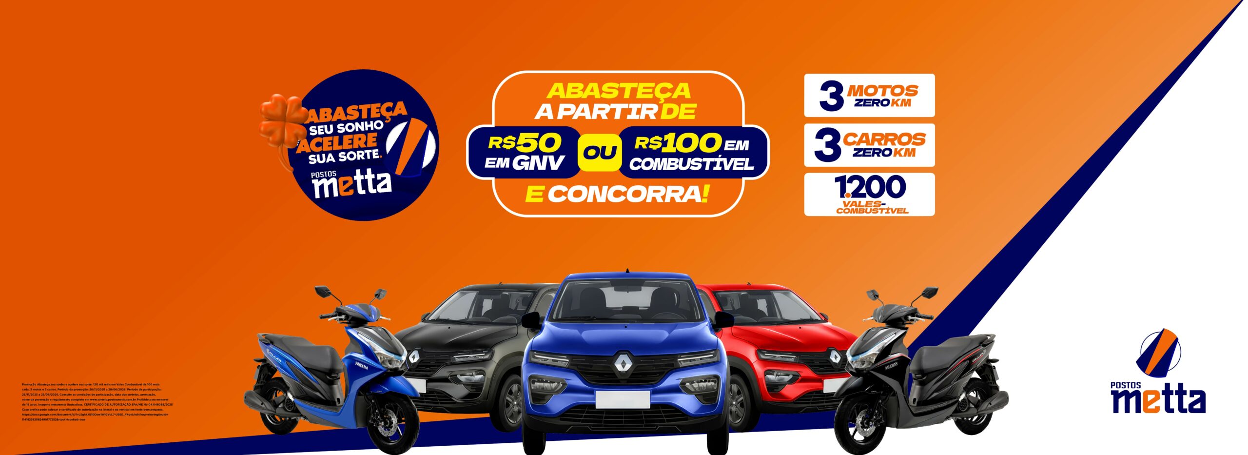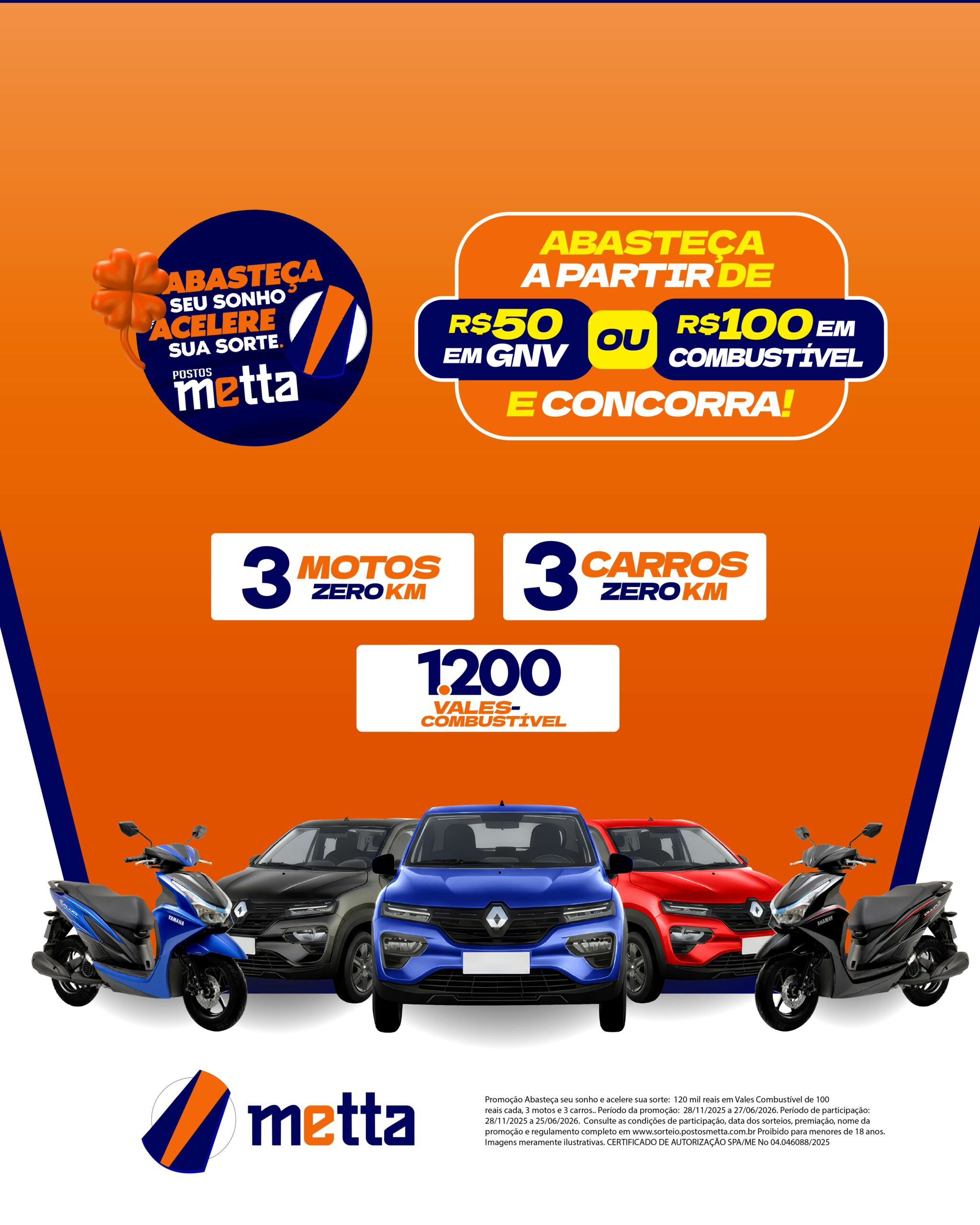 Abasteça acima de R$50 nos postos Metta e ganhe 1 número da sorte para concorrer a vários prémios